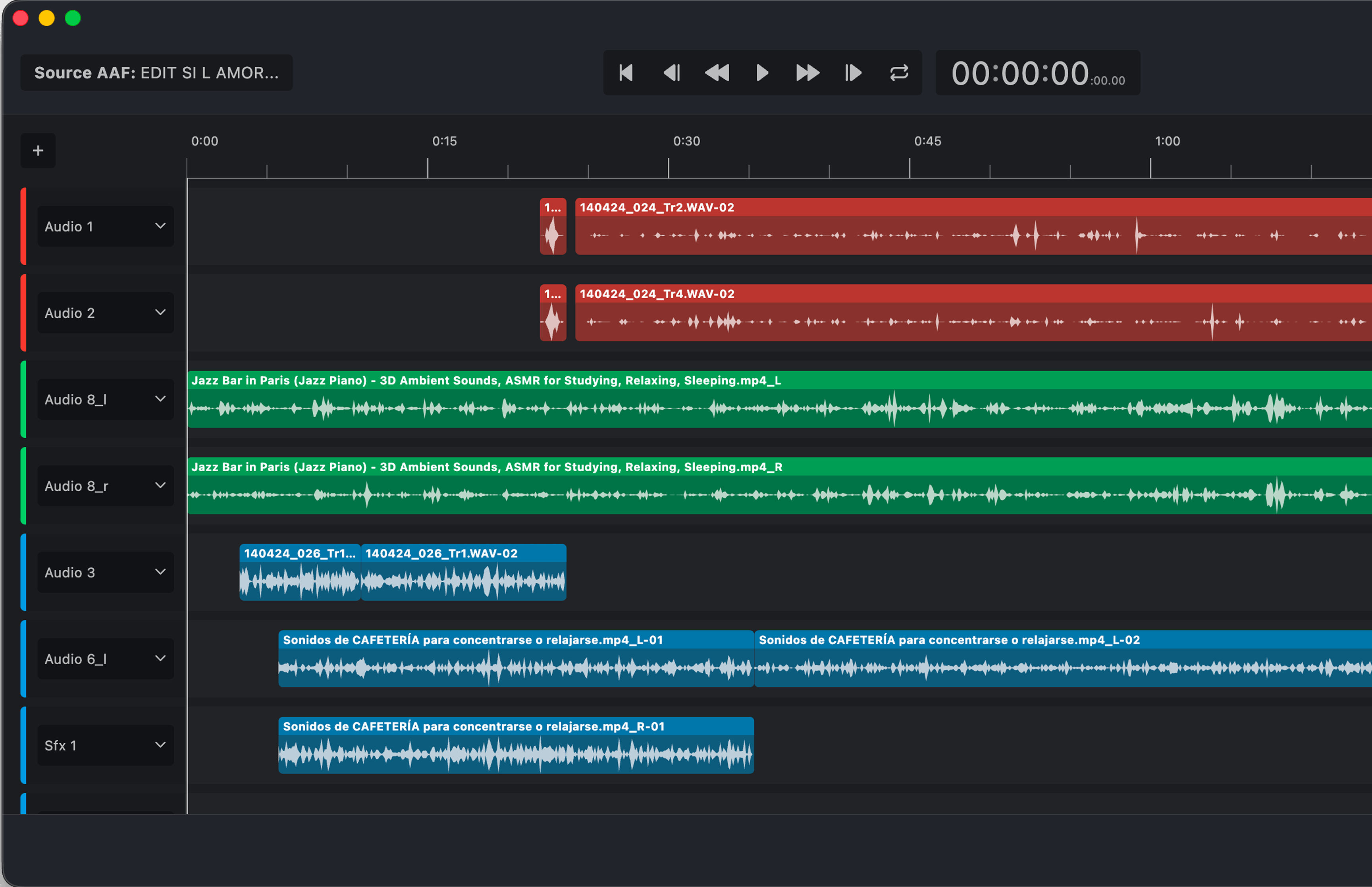fPost splits any AAF into dedicated Dialogue, Music, and SFX sessions automatically. What used to take hours of manual prep is now one click.